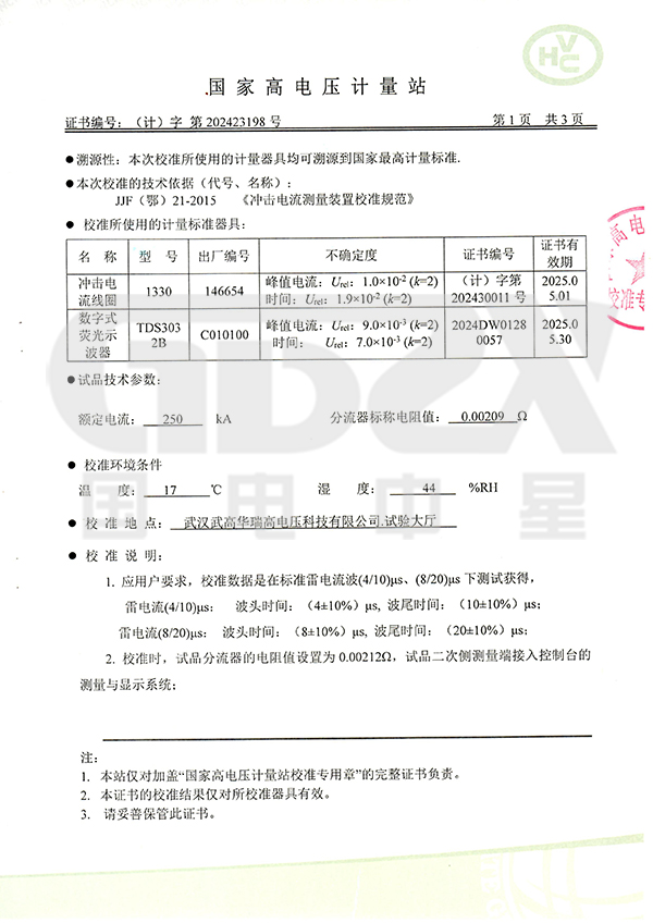 4/10μS沖擊電流幅值 | 100kA±5% |