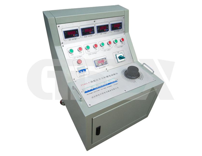 ZXKG-G系列高低壓開關柜通電試驗臺用于高低壓開關柜生產廠家對所生產的高低壓開關柜進行出廠前的各項通電試驗。它能提供各種交、直流電源,便于對開關柜的檢測,提高工作效率。