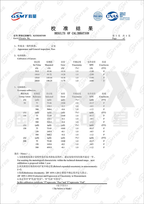 3、測試電流:DC 100A、200A、400A、600A