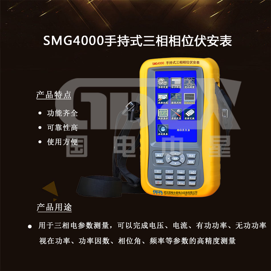 SMG4000手持式三相相位伏安表采用了我公司自主開發并擁有知識產權的儀器儀表通用平臺,該平臺硬件集成了32位CPU、高速AD數據采集、標準的USB存儲和TFT彩色液晶接口。軟件使用我公司獨立開發的嵌入式實時操作系統、高級圖形界面、文件管理系統。由于在硬軟件上采用了一系列高新技術和全新生產工藝,使該儀器體積更小、可靠性更高、指標更穩定、使用更方便和功能更全。主要用于電參數測量,可以完成電壓、電流、有功功率、無功功率、視在功率、功率因數、相位角、頻率等參數的高精度測量。