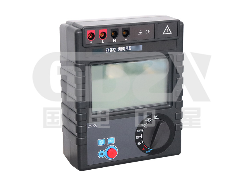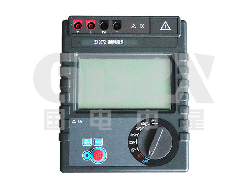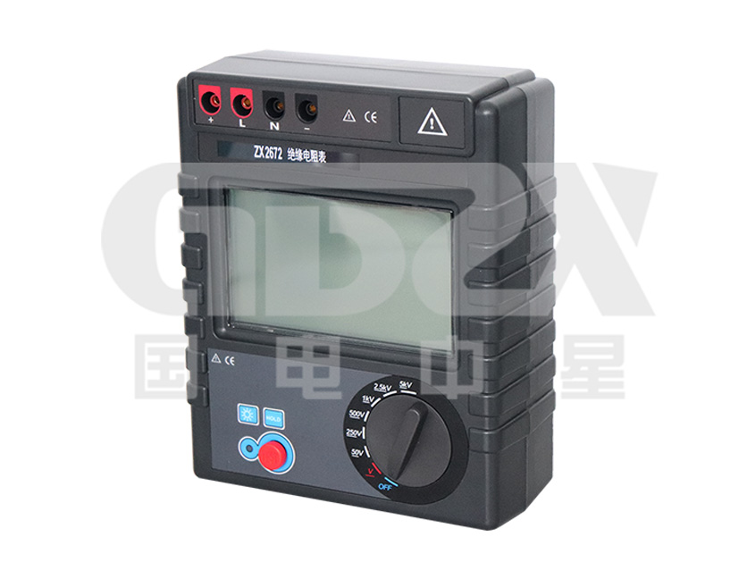 ZX2672絕緣電阻表是一款高性能數(shù)字式儀表,具有LCD大屏幕帶背光顯示、數(shù)據(jù)保持、自動放電、自動關機等功能。儀表具有測試計時,電壓監(jiān)測功能,回路電壓大于36V時,儀表將禁止測試以保護被測物及人員安全。緣電阻值,測試時間,輸出電壓同屏顯示,同時還具備測量交流電壓、直流電壓功能。本系列儀表輸出電壓5000V,測試阻值400GΩ,短路電流2mA。